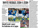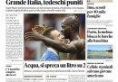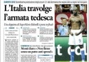 I giornali esaltano la vittoria dell'Italia, "giganti", "impresa", magica Italia", dedicando pensieri anche a Merkel