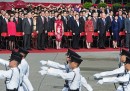 Il presidente cinese Hu Jintao ha visitato oggi la città di Hong Kong per il giuramento del nuovo leader politico della città, il 57enne Leung Chun-ying. La cerimonia si è tenuta in una data importante per Hong Kong: quindici anni fa, il primo luglio 1997, la sovranità di Hong Kong venne trasferita dal Regno Unito alla Cina, un passaggio che viene chiamato nel Regno Unito “the Handover” (“la Cessione”), ma in Cina “la Riunificazione” o “il Ritorno”. Hong Kong continua a mantenere uno status molto particolare all’interno della Repubblica Popolare Cinese, e il rapporto degli abitanti della città con il resto del paese è spesso difficile: per questo motivo, la visita di Hu Jintao è stata accompagnata da grandi proteste e da manifestazioni a cui hanno partecipato migliaia di persone.
