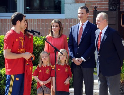 La Nazionale è stata anche accolta in una cerimonia piuttosto informale da re Juan Carlos di Spagna, dal principe Felipe con la moglie Letizia e le figlie Leonor e Sofia a Palazzo della Zarzuela, residenza della famiglia reale spagnola. Il capitano Iker Casillas ha consegnato al re Juan Carlos una maglietta della Spagna firmata da tutti i giocatori. Juan Carlos li ha ringraziati dicendo: «Gli spagnoli sono orgogliosi di voi, davvero orgogliosi, non solo perché ognuno di voi è un buon giocatore ma perché come squadra siete strepitosi».