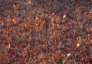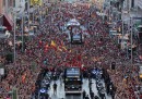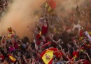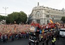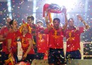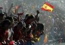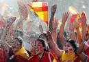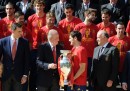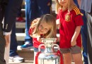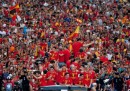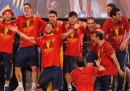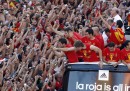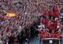 Centinaia di migliaia di persone hanno festeggiato nelle strade di Madrid la Nazionale spagnola di calcio, di ritorno da Kiev dopo la vittoria degli Europei. I giocatori hanno percorso il centro della capitale su un pullman scoperto da dove hanno mostrato la Coppa ai tifosi. Al centro di piazza Cibeles, la principale di Madrid, era stato eretto un palco da cui i giocatori hanno continuato a festeggiare e brindare con bottiglie di spumante.