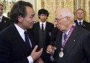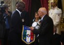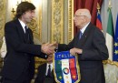 Lunedì la Nazionale italiana di calcio è tornata a Roma dopo la fine degli Europei e ha incontrato il presidente Giorgio Napolitano al Quirinale. Andrea Pirlo e Mario Balotelli gli hanno consegnato il gagliardetto della squadra e un pallone ufficiale degli Europei firmato da tutti i calciatori, mentre Gianluigi Buffon ha letto i nomi dei suoi compagni. Cesare Prandelli ha regalato a Napolitano una delle medaglie d’argento vinte e lo ha definito «il nostro primo tifoso», dicendo che «ci ha aiutato a sopportare la sconfitta», riferendosi alla lettera ricevuta da Napolitano alla vigilia della finale contro la Spagna.