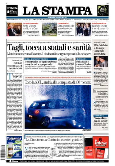 Le prime pagine di mercoledì 4 luglio 2012