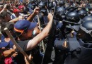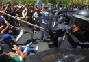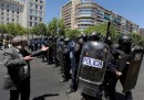 Giovedì alle 11 centinaia di persone si erano ritrovate in Plaza de Colón per una marcia che sarebbe terminata davanti al ministero dell’Industria: li avevano raggiunti altri minatori da tutta la Spagna e migliaia di manifestanti per un totale di quattromila persone, secondo il governo spagnolo, e 15 mila secondo gli organizzatori. A un certo punto – secondo quanto riportato dai testimoni – alcuni manifestanti hanno lanciato petardi, sassi, lattine e banane contro i poliziotti, che hanno risposto sparando gas lacrimogeni e proiettili di gomma. Otto persone sono state arrestate – due minatori e sei appartenenti ai movimenti – e 76 sono state ferite, di cui 43 manifestanti e 33 poliziotti. Secondo Graeme Wearden del Guardian, si tratta della più grave protesta nell’Eurozona degli ultimi mesi.