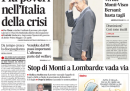Monti preoccupato per il fallimento della Sicilia, i dati ISTAT sull'aumento della povertà in Italia, e Repubblica si occupa delle vicende giudiziarie di Berlusconi
