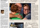 Oggi le prime pagine dei giornali statunitensi si occupano tutte di quello che è successo ad Aurora, vicino a Denver, in Colorado, dove un ragazzo di 24 anni ha sparato sul pubblico durante la proiezione del nuovo film di Batman, “The dark knight rises”, uccidendo 12 persone e ferendone altre 58.