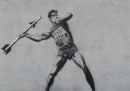 I due graffiti di Banksy sono stati scoperti dopo che la scorsa settimana, a Londra, sono stati arrestati alcuni artisti di strada. Tra loro c’era anche Darren Cullen, diventato famoso perché Adidas (uno dei principali sponsor dei Giochi) l’anno scorso gli aveva commissionato un graffito per pubblicizzare una nuova scarpa da calcio. A Cullen è stato ordinato di restare a un miglio di distanza da qualsiasi sede olimpica. A Londra sarebbe in corso un’azione preventiva della polizia metropolitana per evitare “disordini” e mantenere l’ordine pubblico durante le Olimpiadi, e gli artisti di strada sarebbero al centro di questa strategia. Oltre gli arresti, in questi mesi la città è stata “ripulita” con la cancellazione dai muri di molti graffiti.