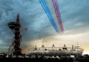 In un’altra fotografia, fatta ieri sera durante la cerimonia di apertura dei giochi, la pattuglia acrobatica dell’aeronautica militare britannica sfreccia sopra lo stadio olimpico di Londra. Qualche ora dopo, invece, la regina Elisabetta si vede riflessa su uno specchio ricurvo durante una visita guidata sulla Orbit Sculpture insieme al sindaco di Londra Boris Johnson.