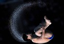 Oggi pomeriggio alle Olimpiadi di Londra le due cinesi Wu Minxia e He Zi hanno vinto la gara del tuffo sincronizzato da tre metri. Le italiane Tania Cagnotto e Francesca Dallapé sono arrivate quarte. «Di norma nei tuffi l’argento è oro», ha detto il tuffatore inglese Tom Daley, «perchè i cinesi vincono tutto». Wu Minxia ha eguagliato così il record del suo compagno Guo Jingjing, vincendo la sua sesta medaglia olimpica.