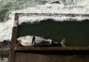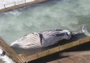 La carcassa di una megattera di undici metri e circa 30 tonnellate è stata trovata questa mattina in una piscina oceanica a Newport Beach, un quartiere di Sydney, in Australia. Secondo gli esperti la megattera – che è un giovane esemplare maschio – sarebbe morta in mare tre o quattro giorni fa ed è stata sbattuta sulla piscina dalle onde dell’Oceano, particolarmente mosse durante la notte. Nell’impatto il corpo della megattera ha piegato parte della ringhiera che circonda la piscina.