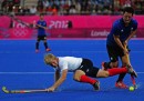 Il termine hockey deriva dalla parola francese hocquet, che significa bastone da pastore e allude ai bastoni usati dai giocatori per spostare la palla. Testimonianze di giochi con palle e bastoni nell’antichità sono diffuse in tutto il mondo, ma l’hockey moderno è stato codificato in Inghilterra alla fine dell’Ottocento, quando nel 1861 fu aperto il primo club. Da lì si diffuse nelle colonie dell’Impero Britannico, come l’India, l’Australia e il Pakistan che da sempre dominano le Olimpiadi in questo sport. L’hockey maschile fu introdotto alle Olimpiadi di Londra del 1908: in finale l’Inghilterra batté l’Irlanda 8-1. Quello femminile fu invece giocato per la prima volta alle Olimpiadi di Mosca nel 1980. Fino agli anni Settanta l’hockey era giocato su erba, ora sostituita con erba sintetica. In questa edizione dei Giochi, per la prima volta nella storia delle Olimpiadi, il campo è blu e non verde.