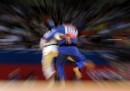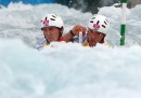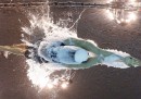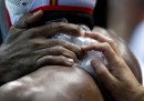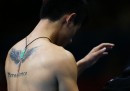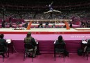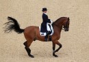 Le foto più belle del sesto giorno includono malinconici cavalieri in gare di dressage sotto la pioggia, ballerine inglesi che aprono le gare di ginnastica artistica, atleti che si allenano – nei tuffi e nel canottaggio – e il tatuaggio sulla schiena del cinese Zhang Jike, medaglia d’oro di tennistavolo (se non vi ricordate le regole potete ripassarle qui). Ci sono anche due italiani, Alessio Sartori e Romano Battisti, che hanno vinto l’argento nel canottaggio doppio.