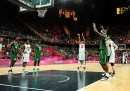 Ieri alle Olimpiadi di Londra 2012 la squadra di basket degli Stati Uniti ha battuto quattro record in una sola partita. La partita è stata vinta contro la Nigeria 156-73, nella terza partita del girone A. Mai nella storia delle Olimpiadi erano stati fatti tanti punti in una sola partita e mai una partita era stata vinta con uno scarto così ampio (83 punti). Il giocatore statunitense Carmelo Anthony ha fatto 37 punti, come nessun giocatore americano aveva mai fatto, realizzando 10 canestri su 12 nel tiro da tre punti, altro record olimpico. La circostanza ha fatto parlare di nuovo di “dream team”, il modo in cui veniva chiamata la fortissima squadra statunitense di basket alle Olimpiadi di Barcellona 1992. Nelle due partite precedenti a Londra gli Stati Uniti hanno battuto la Francia 98-71 e la Tunisia 110-63.