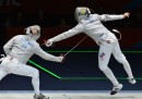 Il trio composto da Diego Occhiuzzi, Luigi Samele, (che nella finale ha sostituito Luigi Tarantino) e Aldo Montano ha vinto contro la Russia per 45 a 40. Questa per l’Italia è la dodicesima medaglia olimpica: fino ad oggi gli azzurri hanno ottenuto 4 ori, 5 argenti e 3 bronzi. Il terzetto azzurro era stato battuto con un punteggio di 45-37 dalla Corea del Sud in semifinale. Ieri l’Italia ha vinto la medaglia d’oro nel fioretto femminile a squadre battendo in finale la Russia per 45-31 con Elisa Di Francisca, Arianna Errigo e Valentina Vezzali.