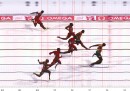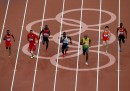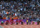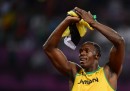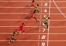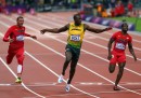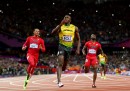 Usain Bolt ha vinto la medaglia d’oro nei 100 metri piani alle Olimpiadi di Londra, il primo a vincere sul campo due olimpiadi consecutive nei 100 metri (l’altro è Carl Lewis, ma grazie a una squalifica). Bolt ha fatto il tempo di 9 secondi e 63 centesimi, nuovo record olimpico. Secondo è arrivato un altro giamaicano, Yohan Blake, e terzo lo statunitense Justin Gatlin. Il notevolissimo tempo di 9.80 non è bastato all’altro statunitense Tyson Gay per vincere una medaglia.