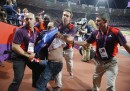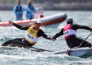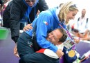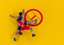 Mentre gli italiani portavano a casa due medaglie sparando (e festeggiando tra loro gente armata, come si vede) e una volteggiando, intorno a Londra succedeva di tutto. Molta vela, velisti vincenti che si buttavano in acqua, cavalieri fotografati con tecniche spettacolari, mani di atleti, ginnasti depressi, e le rettili anfibie del nuoto sincronizzato. E una foto di ieri, quella del testone che ha esagerato con la bottiglia.