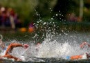 Molta acqua, con nuotatori tenaci, velisti in acqua vestiti e leali canoisti: ma anche molti nastri colorati