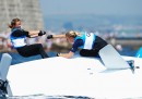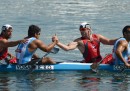 Terzultimo giorno di Olimpiadi a Londra che ha mostrato ai fotografi la gara di nuoto da superuomini dei 10 km nelle stagnanti acque di Hyde Park dove ieri avevano già nuotato le donne, molta ginnastica ritmica e nastri (per l’irritazione di Massimo Gramellini), la vela con i rituali tuffi in mare dei velisti festanti, e i kayak. Molta acqua, insomma, per ora.