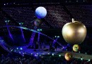 Prima che la Regina Elisabetta dichiarasse l’inizio ufficiale dei giochi, otto atleti della Gran Bretagna del basket in sedia a rotelle hanno portato la bandiera della nazione ospitante, innalzata poi dagli ufficiali delle forze armate. Sei, tra atleti ed ex atleti paralimpici, hanno fatto l’ingresso allo stadio su delle sedie a rotelle d’oro e subito dopo David Rawlins, ex militare che ha combattuto in Afghanistan oggi disabile, ha fatto un giro sopra lo stadio alla guida di un aereo. Poi un ombrello gigante si è trasformato in una palla di fuoco come simbolo del big bang, dando inizio alle coreografie. E tanti piccoli funghi di color argento hanno iniziato a saltellare, a simboleggiare il bosone di Higgs.