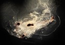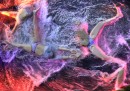 Ieri, durante un festival internazionale organizzato a Singapore, il gruppo di danza argentino Fuerzabruta ha messo in scena uno spettacolo molto particolare che si intitola Mylar. Durante lo spettacolo le ballerine danzano distese su una superficie trasparente tesa sopra il pubblico e piena d’acqua, facendo diverse coreografie rese ancora più suggestive da giochi di luci.