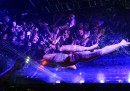 Giochi di luce, ma soprattutto ballerine che danzano nell'acqua su una superficie trasparente sospesa sopra il pubblico