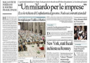 Le richieste di Confindustria al Governo, la crisi del lavoro, ma anche la camera ardente del cardinal Martini e la tripletta di Pazzini di ieri