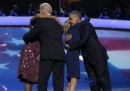 Prima di Obama aveva parlato il vicepresidente Joe Biden (che Obama ha ringraziato e lodato all’inizio del suo discorso), attaccando spesso con sarcasmo Mitt Romney e i suoi punti deboli. Ma il momento più emozionante per la convention è stato l’intervento di Gabrielle Giffords, l’ex deputata dell’Arizona gravemente ferita in un attentato a Tucson nel gennaio 2011, che ha recitato col pubblico il giuramento della “Pledge of allegiance“.