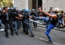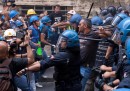 Le foto delle proteste e degli scontri oggi a Roma, contro il governo e contro la chiusura dello stabilimento sardo della multinazionale con sede negli Stati Uniti