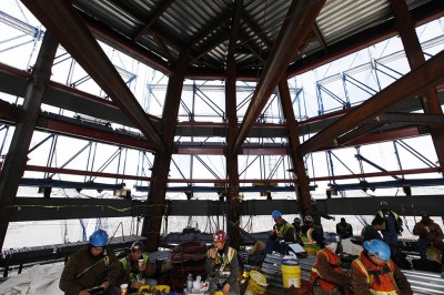 La maggior parte dell’area del New World Trade Center, di 80 mila metri quadrati, è stata aperta al pubblico l’anno scorso e più di 4,5 milioni di persone hanno visitato il memoriale con al centro le due fontane costruite al posto delle Torri Gemelle. In base all’ultimo aggiornamento riportato nel sito ufficiale del World Trade Center del 14 agosto scorso, la costruzione della torre 1WTC è arrivata al 104esimo piano, l’ultimo. La torre è stata dunque completata nella sua struttura principale, fino al punto più alto dell’edificio, mentre all’interno i lavori sono arrivati alla costruzione del pavimento del 93esimo piano e al rivestimento esterno dell’82esimo piano. Ed entro il mese di settembre dovrebbe essere costruito il parapetto sul tetto dell’edificio.