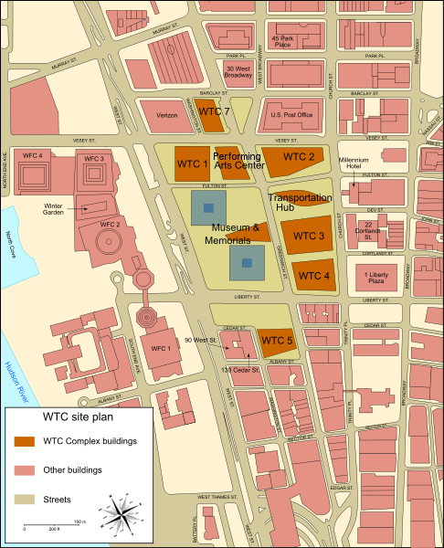 Poco più a nord c’è il 3 World Trade Center, che sostituirà l’albergo di 22 piani che c’era prima dell’attentato. Sarà completato nel 2015 o nel 2016, non prima comunque che almeno 400.000 metri quadrati di spazio vengano affittati. Il progetto prevede la costruzione di 80 piani. Nell’angolo a nord-est dell’area c’è il 2 World Trade Center, che in base al progetto iniziale dovrebbe essere di 88 piani. Ma i lavori sono fermi e l’edificio si trova ancora a livello della strada. La sua costruzione non andrà avanti finché l’andamento del mercato immobiliare non migliorerà. La nuova stazione della metropolitana aprirà nel 2015, sarà connessa a 13 linee e il nuovo centro sarà raggiungibile anche dal treno veloce della Port Authority Trans-Hudson (PATH). Il costo totale è di 3,5 miliardi di dollari.