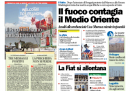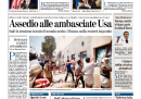 Gli scontri in Medio Oriente davanti alle ambasciate americane per protestare contro il film blasfemo su Maometto, dopo l’assalto al consolato di Bengasi che ha provocato la morte dell’ambasciatore in Libia, sono in apertura su quasi tutti i giornali di oggi. Il Messaggero e il Mattino si occupano invece delle dichiarazioni di Monti sullo statuto dei lavoratori, le cui tutele non avrebbero favorito l’occupazione in Italia, l’Unità apre con la decisione della FIAT di annullare il piano di rilancio in Italia deciso due anni fa, mentre il Giornale e Europa, con due punti di vista diversi, seguono l’avvio della campagna di Renzi per le primarie del Partito Democratico.