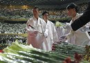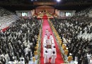 Più di trentamila seguaci della Chiesa dell’Unificazione si sono riunite ieri in un complesso a circa 60 chilometri da Seul, in Corea del Sud, per celebrare i funerali del reverendo Sun Myung Moon, il fondatore della chiesa. Il reverendo Moon è morto lunedì 3 settembre a 92 anni. Era nato nel 1920 in Corea del Nord e fondò la sua chiesa in un campo per rifugiati nel 1954, subito dopo la guerra di Corea. Il reverendo Moon sosteneva che Gesù gli avesse affidato il compito di creare il regno di Dio sulla Terra.