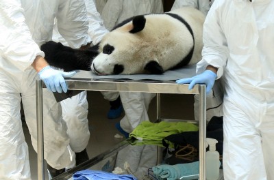 Le foto dei controlli sui due panda giganti arrivati da poco a Singapore dalla Cina