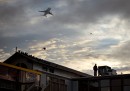 Le foto dello Shuttle montato su un Boeing 747 in volo dalla Florida verso Los Angeles, dover sarà conservato in un museo