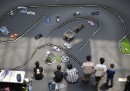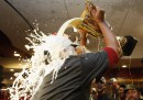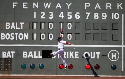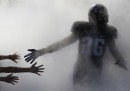 I fotografi sportivi devono saper cogliere l’attimo, come l’istante in cui lo stadio di Londra, durante un partita di Premier League, viene riflesso in un bolla di sapone. Un effetto ottico, come l’impressione che un giocatore di baseball voli mentre cerca (senza successo) di ricevere la palla e uno di rugby che, sempre in volo, segna una meta. E poi giganti che osservano dall’alto auto da corsa per le strade di Singapore e altri giganti ancora – un lottatore di sumo – che tiene in braccio una coppa e il figlio appena nato. Una delle immagini migliori, però, sono le mani che emergono dalla nebbia per sfiorare un campione di football.