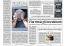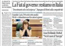Le rassicurazioni della Fiat, gli sviluppi dello scandalo in Regione Lazio, la verità di Sallusti sul proprio arresto e Fabio Quagliarella