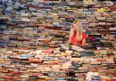 LONDON, ENGLAND – JULY 31: Employee Tilly Shiner looks at a book in the aMAZEme labyrinth at The Southbank Centre on July 31, 2012 in London, England. Brazilian artists Marcos Saboya and Gualter Pupo used 250,000 books to create the maze which will be on display until August 25, 2012. (Photo by Peter Macdiarmid/Getty Images)
