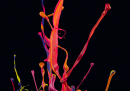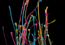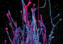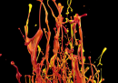 Questa serie di immagini, intitolata “A cosa assomiglia la musica?“, è composta da fotografie scattate grazie alla vibrazione di una cassa per la musica con una canzone particolare (non importa quale: l’artista sceglie in maniera arbitraria e in base a quelle che potrebbero vibrare meglio) e sulla quale l’artista ha messo del colore (scelto da lui e che a suo parere possa rappresentare la musica). La vibrazione fa schizzare il colore verso l’alto ed è in quel momento che Klimas scatta la foto.