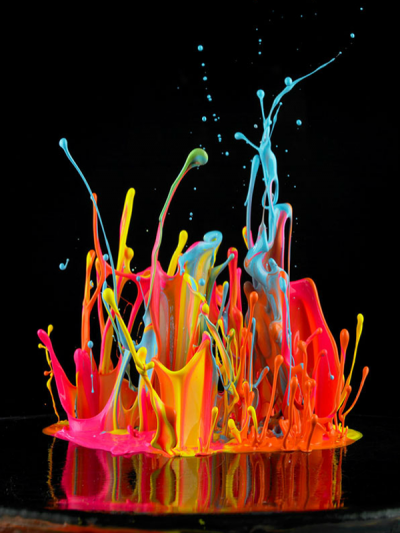 Questa serie di immagini, intitolata “A cosa assomiglia la musica?“, è composta da fotografie scattate grazie alla vibrazione di una cassa per la musica con una canzone particolare (non importa quale: l’artista sceglie in maniera arbitraria e in base a quelle che potrebbero vibrare meglio) e sulla quale l’artista ha messo del colore (scelto da lui e che a suo parere possa rappresentare la musica). La vibrazione fa schizzare il colore verso l’alto ed è in quel momento che Klimas scatta la foto.