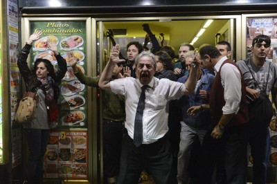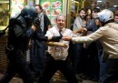 Delle molte fotografie scattate martedì sera durante la manifestazione di Madrid fermata dalla polizia spagnola con proiettili di gomma e manganelli, e riprodotte dai media in tutto il mondo, alcune in particolare hanno attirato molta attenzione, curiosità e discussione. Sono quelle che mostrano un uomo in camicia bianca davanti all’ingresso di un ristorante con espressioni disperate e imploranti, e intorno a sé agenti di polizia, manifestanti e clienti del ristorante stesso.