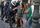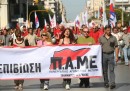 Circa 70mila persone, dicono le stime di Reuters, hanno marciato ad Atene raggiungendo la sede del Parlamento e cantando slogan contro la cosiddetta “troika”, cioè Unione Europea, Banca Centrale Europea e Fondo Monetario Internazionale. Proprio a queste istituzioni erano dedicati altri slogan, come “Fuori UE e FMI!”. Dal gruppo dei manifestanti si sono poi separate decine di persone che hanno iniziato a lanciare oggetti e a provocare le forze dell’ordine. Ci sono state anche alcune cariche per disperdere i manifestanti più violenti e sono scoppiati alcuni incendi a causa del lancio delle molotov. Alcuni hanno dato fuoco a fermate degli autobus e a cassonetti dei rifiuti. Oltre 100 persone sono state arrestate.
