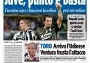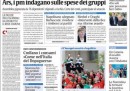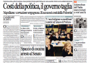 Le indagini e i provvedimenti allo studio per ridurre i costi della politica sono in apertura su tutti i giornali di oggi, che per la maggior parte titolano con le parole di Napolitano che parla di “corruzione vergognosa”, mentre Repubblica, il Corriere della Sera e Libero analizzano nel dettaglio i costi e i possibili tagli e il Giornale si occupa di Fiorito e della possibilità che vada in pensione a 50 anni. Sui quotidiani sportivi ampio spazio al pareggio di ieri sera fra Fiorentina e Juventus, che rimane in testa alla classifica ma ha rischiato molto la sconfitta.