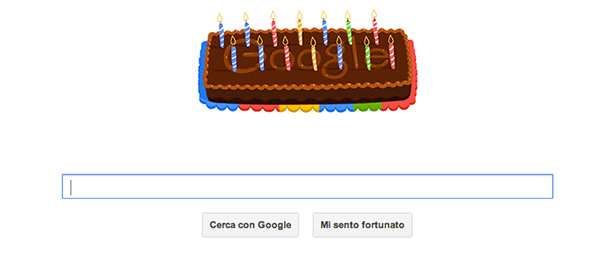 Google, il motore di ricerca più utilizzato al mondo, è il protagonista del doodle di Google di oggi. La società ha deciso di autocelebrarsi per festeggiare il proprio quattordicesimo compleanno, sostituendo il tradizionale logo con il disegno di una torta con due file di sette candeline.