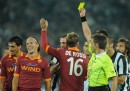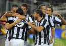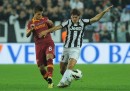 La Juventus ha battuto per 4-1 la Roma nell’anticipo serale della sesta giornata di campionato. Il primo tempo della partita è stato dominato dalla Juventus in modo quasi surreale, segnando tre gol in nove minuti, colpendo due traverse e costringendo all’ammonizione tutti e quattro i difensori della Roma, che non ha mai tirato in porta. Nel secondo tempo la Juventus ha molto rallentato il ritmo, forse anche per conservare le energie in vista della prossima giornata di Champions League, e la Roma è lentamente tornata a combinare qualcosa, complici anche le sostituzioni. A metà del secondo tempo Osvaldo ha fatto gol per la Roma su rigore. Negli ultimi minuti la Juventus ha segnato il quarto gol con Giovinco dopo una gran corsa sulla fascia laterale di Barzagli.