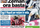 I quotidiani sportivi, invece, aprono tutti parlando della partita di ieri sera tra Juventus e Roma, stravinta dalla Juve con un sonoro 4 a 1, un risultato di cui molti hanno dato la responsabilità a Zeman.