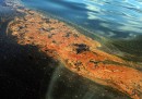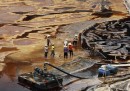 La documentazione dei disastri ambientali e degli inquinamenti deve molto alla fotografia, così come gli studi e i progetti per contrastarli e limitarli. Ma come per molte altre cose la fotografia ha offerto e offre anche molte immagini che restano semplicemente nella storia e nell’informazione di cosa succede alla terra e ai posti in cui viviamo, e diventano parte di queste vite. A volte persino in modo spettacolare, come quando una piattaforma petrolifera va in fiamme, prima di diventare doloroso, quando il petrolio avvolge i cormorani e le patacche di catrame arrivano in spiaggia. Mari, cieli, terra e fiumi cambiano colore, diventano un’altra cosa, e gli inquinamenti da attività umane diventano, per la superficiale immagine fotografica, un fattore ambientale come un altro, suggerendo di volta in volta emozioni ipnotizzate o preoccupate. Sono, in fondo, panorami che abbiamo creato noi.