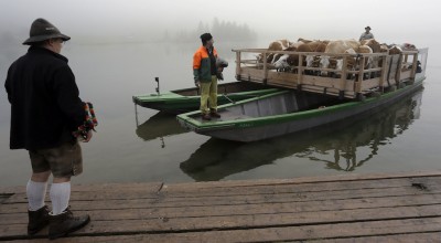 Le foto suggestive del trasporto di una mandria da una sponda all'altro del lago Königssee
