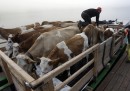 Con l’arrivo del freddo gli allevatori delle Alpi bavaresi riconducono a valle il loro bestiame, che ha trascorso l’estate sui pascoli estivi. Nella zone vicino a Berchtesgaden l’unico modo per farlo è caricando le mucche su una barca che attraversa il lago Königssee: il fotografo dell’Associated Press Matthias Schrader ha fotografato le operazioni di trasporto circondate da un paesaggio molto suggestivo.