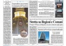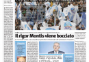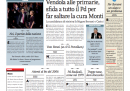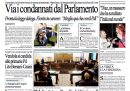 La maggior parte dei giornali di oggi apre con l’arresto dell’ex capogruppo del PDL alla Regione Lazio Fiorito, con le eccezioni del Corriere della Sera, che si occupa dello sciopero del trasporto locale di ieri definendolo una cosa “non da paese civile”, di Repubblica, che ipotizza una approvazione veloce da parte del Parlamento della norma che prevederebbe l’ineleggibilità di chi ha una condanna definitiva superiore a due anni, dell’Unità e Europa, che seguono la candidatura di Vendola alle primarie e le polemiche fra il PD e Casini per l’alleanza con SEL, e del Manifesto, che dedica l’apertura alle motivazioni della Corte di Cassazione della condanna per i pestaggi alla scuola Diaz a Genova, che denunciano le responsabilità dell’ex capo della polizia De Gennaro. I quotidiani sportivi aprono con il pareggio in casa in Champions League della Juventus, che ha rischiato grosso contro gli ucraini dello Shakhtar.