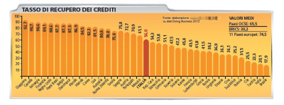 È banale, ma sacrosanto: non c’è azienda che decida d’investire se non ha fiducia in un Paese. L’economia vive di fiducia. E finora, al riguardo, è stato sottovalutato l’impatto negativo di una giustizia inefficiente. Che diventa immediatamente un freno. «Il costo sociale dell’inefficienza della giustizia – ripete spesso la ministra della Giustizia, Paola Severino – è enorme». Forte della sua esperienza di avvocato che ha patrocinato diverse grandi aziende italiane, la Severino è particolarmente attenta a questi aspetti. È lei che s’è inventata il Tribunale delle imprese, che in pratica sono sezioni specializzate per creare una corsia preferenziale. Qualcuno potrebbe obiettare: perché preoccuparsi di una giustizia efficiente per le aziende e non per il comune cittadino? La risposta l’ha data l’ex Governatore di Banca d’Italia, Mario Draghi: «Perché la perdita annua di prodotto attribuibile ai difetti della nostra giustizia civile potrebbe giungere a 1 punto percentuale del Pil». In cifre, sono 18 miliardi di euro che ci potrebbero essere e che non ci sono. E ciò significa, in concreto, che ci sono multinazionali che rinunciano ad aprire fabbriche o filiali da noi perché terrorizzate dalla prospettiva di affrontare 41 passaggi per risolvere una controversia commerciale. Peggio di noi fanno solo Brasile e India. In Irlanda ne bastano la metà.