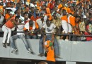 La partita di calcio tra Senegal e Costa d’Avorio per le qualificazioni alla fase finale della Coppa d’Africa è stata sospesa a un quarto d’ora dalla fine per gli scontri che ci sono stati sugli spalti dello stadio di Dakar, in Senegal: i tifosi senegalesi hanno iniziato ad appiccare incendi, a lanciare pietre in mezzo al campo e a sparare in aria colpi di arma da fuoco.